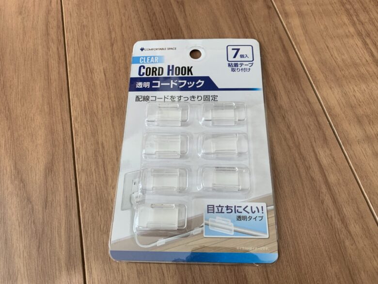 さらにケーブルフックもあるので、ケーブルフックも合わせて購入しました(こっちのケーブルフックはセリアに売ってます)