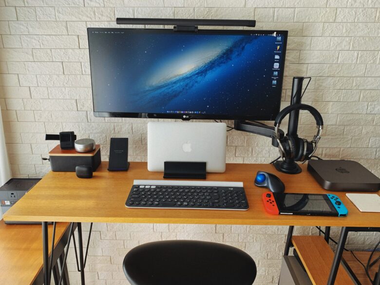 上のデスク環境はMacBook Air(ウルトラワイドディスプレイ)のデスク周りなので、こちらで詳細をまとめております。