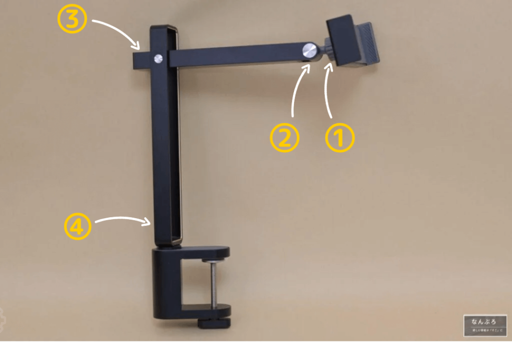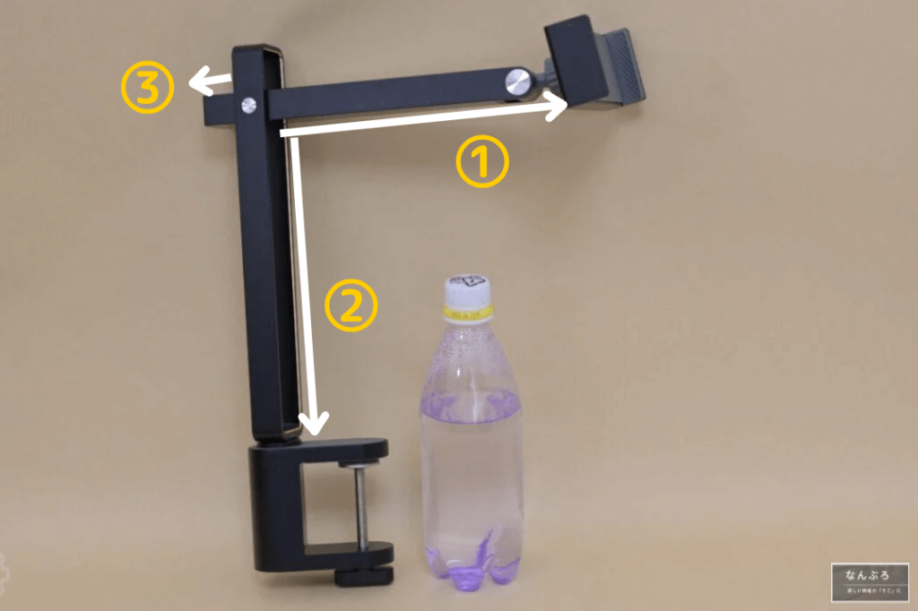 今回のアームスタンドはいろんなところが可動します。