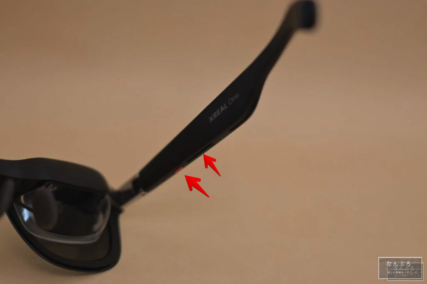 正面の変化というよりは、ARレンズの右側の上部に1つ、下部に2つボタンがあり、その各ボタンでショートカット割当てや決定などの操作ができるようになってます。